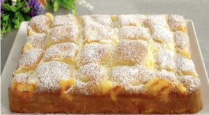 3. Als letztes füllen Sie den Rührteig mit den Apfelstücken in die rechteckige Springform und auf mittlerer Einschubleiste 40-50 Minuten lang backen und fertig. Es ist Schnell und auch lecker!